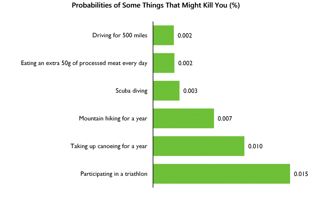What if I take the advice and cut out processed meat? I haven’t cleansed myself of the risk of death from colorectal cancer; I’ve just lengthened the odds from 1 in 8,000 to 1 in 9,000.
