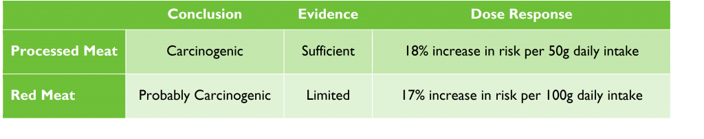 Let’s look at that small sounding extra 50g of processed meat or 100g of red meat.